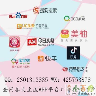 各大平台广告投放,找专业的人做专业的事,本公司投放经营的推广系列产品有:淘宝美柚头条陌陌新浪爱奇艺广告投放开户搜狗关键词标题优化微商推广等等,我们全部都有代理,目前引入原生广告位超2000个,汇集了百亿级别的原生广告流量小+百+姓+网。全网广告曝光量超过100亿,真正实现了跨屏、多终端、多媒体覆盖小.百.姓.网。请说出您的所需,欢迎咨询来源www.xbaixing.com。(全国范围)